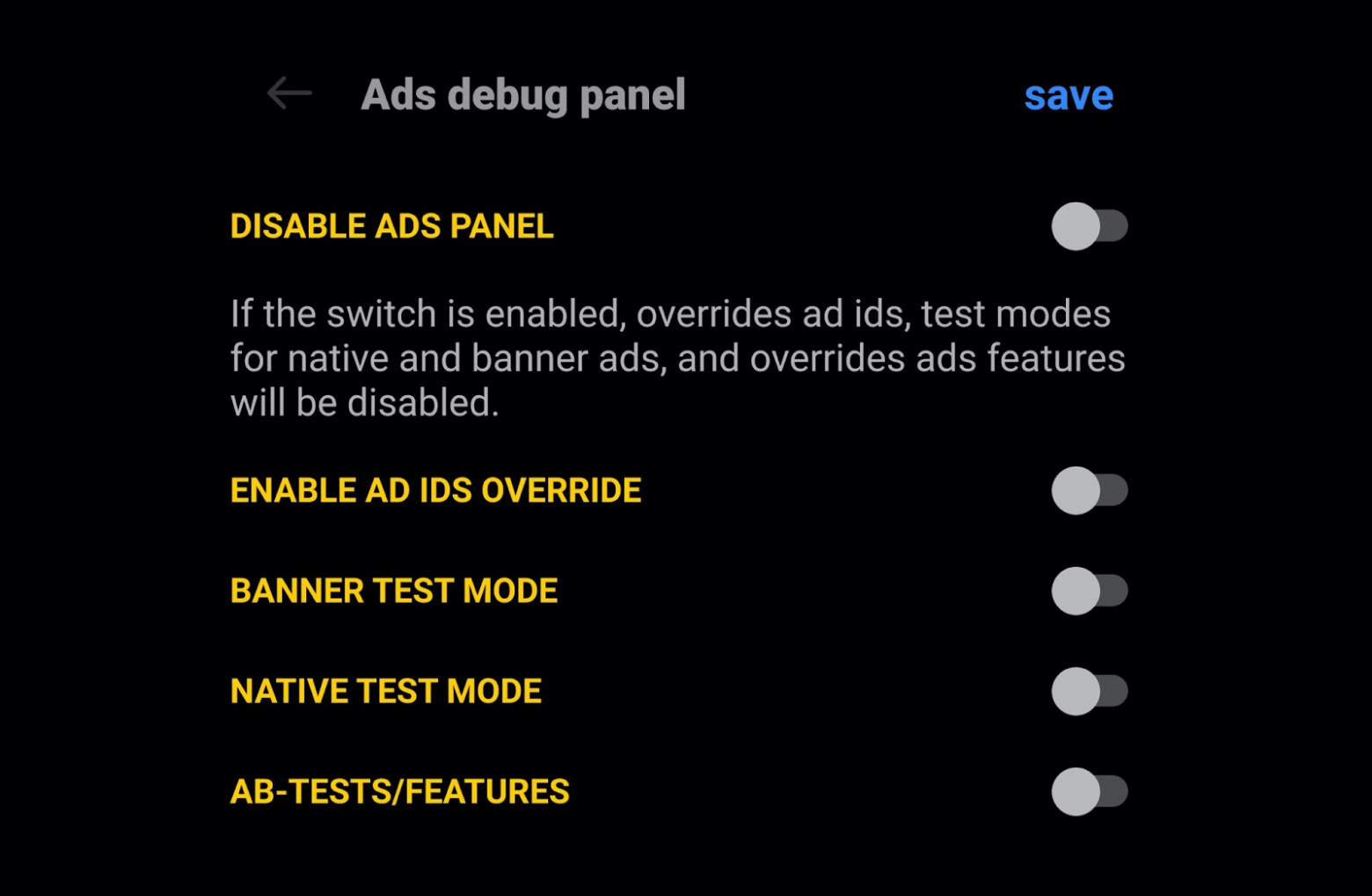 Инструмент №4. Дебаг-панель. Для удобства разработали свою рекламную дебаг-панель, которая представляет собой отдельный интерфейс и в большинстве случаев позволяет локально на клиенте настроить необходимые параметры, заменяя собой практически все инструменты, описанные выше.