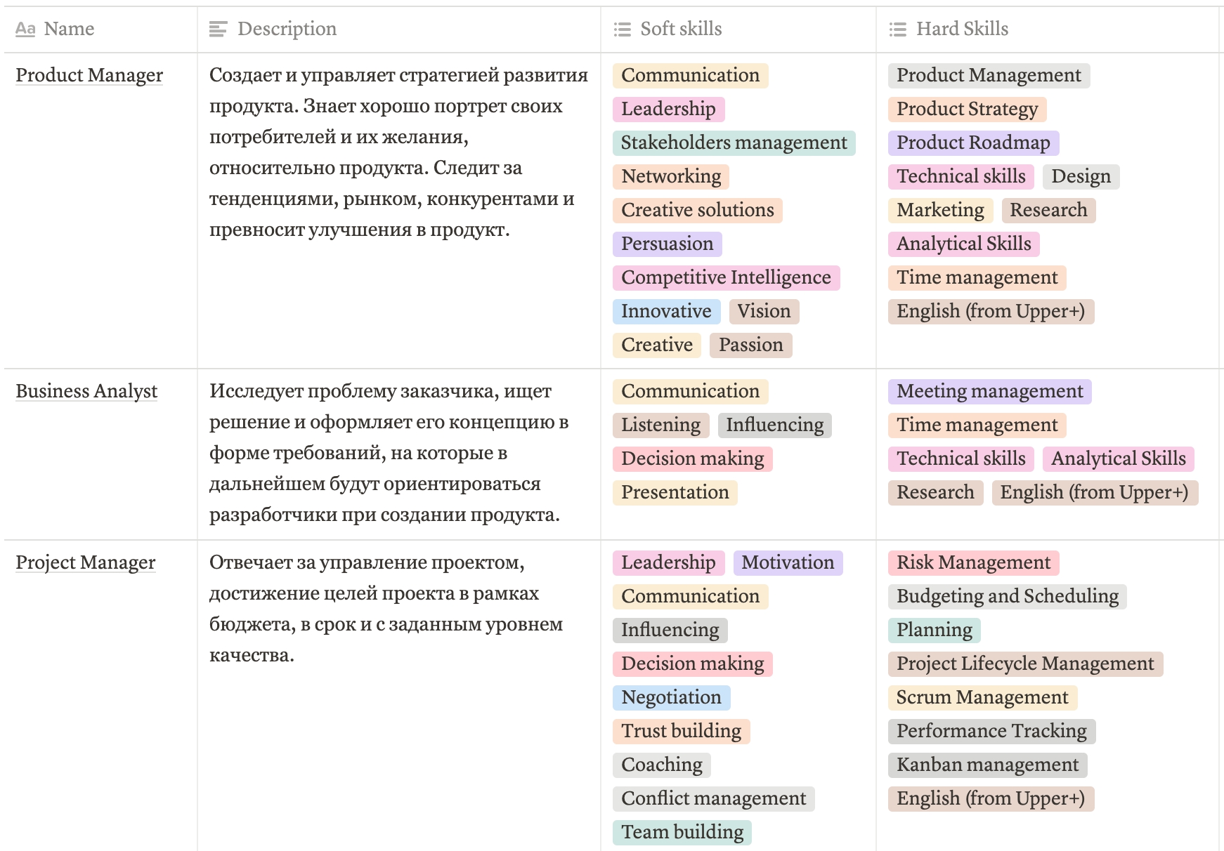 Роли/должности в команде